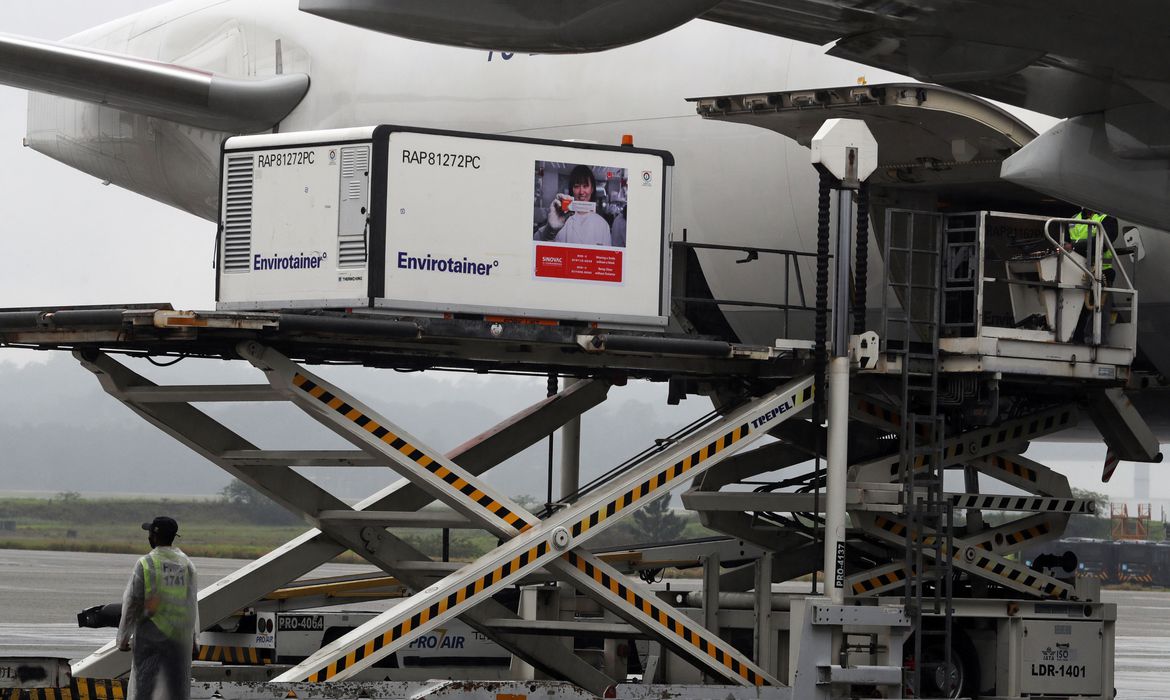 Mais 2.552.820 doses da vacina CoronaVac, contra a covid-19, produzida no Brasil pelo Instituto Butantan, estão sendo enviadas pelo Ministério da Saúde a todos os estados e o Distrito Federal nesta quarta-feira (3). Segundo a pasta, a distribuição das doses está sendo feita de forma proporcional e igualitária e é destinada a vacinar o restante dos trabalhadores da saúde, indígenas do estado do Amazonas e a população brasileira de 80 a 84 anos de idade.