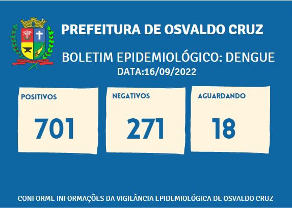 A Vigilância Epidemiológica de Osvaldo Cruz informou nesta sexta-feira (16), os dados atualizados dos casos de dengue registrados em 2022 no município.